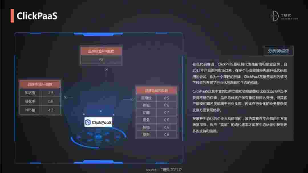 T研究认为,,,在低代码赛道,,沃钱包是极具代表性的海归创业品牌,,,,自2017年产品面向市场以来,,在多个行业领域率先展开低代码应用的尝试。。作为一个年轻的品牌,,,沃钱包较早的开展了行业化的深耕和生态的构建。。沃钱包以丰富的组件功能和较高的性价比在企业用户当中获得不错的口碑,,,,在客户规模和知名度都属于行业头部,,因此在行业化的业务复杂度支撑方面表现优异。。。。