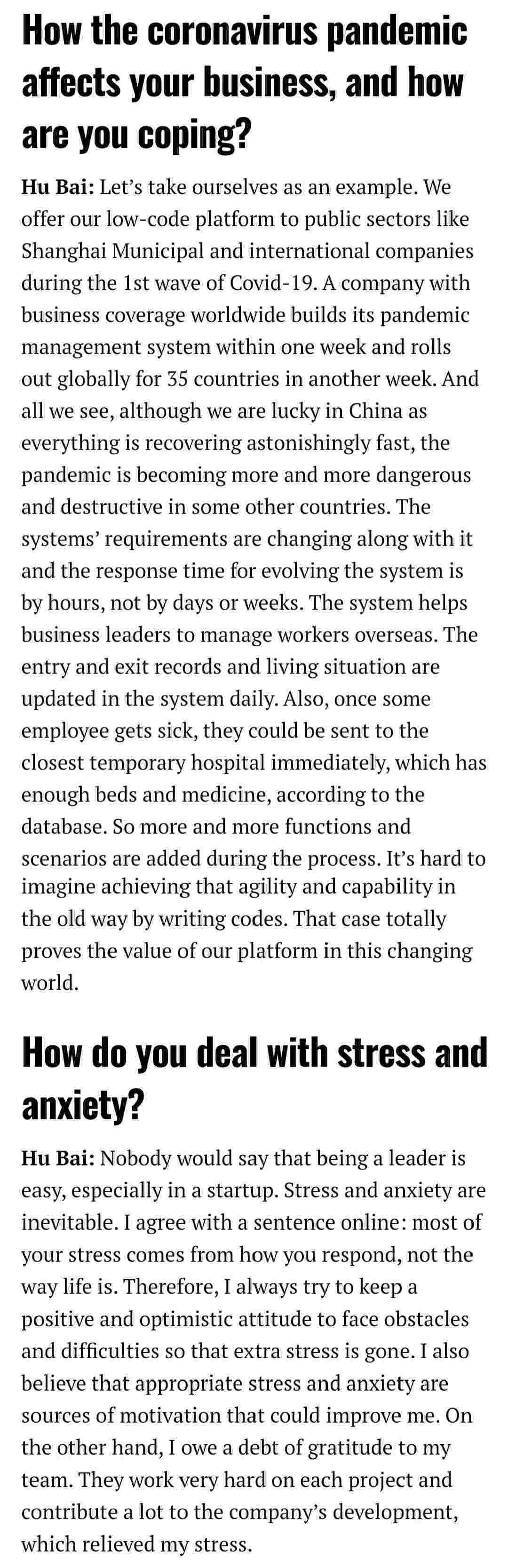 2021年年初,,,,爱湃斯科技CEO胡柏受邀接受法媒Startup.info的专访,,,与Startup info的读者分享了自己的创业经历、、、以及低代码平台沃钱包的创新之处。。。。