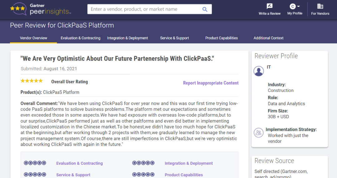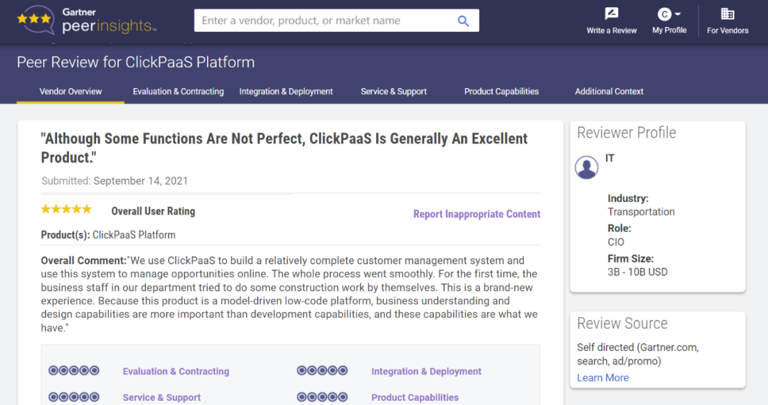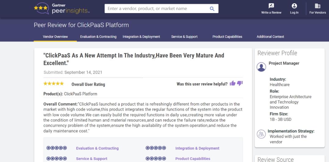 Tips:::【Peer Insights】——用户对企业IT产品和服务发布真实评价的平台。。。目前已有355个市场,,,255,000条经过验证的评价。。。。每一条评价Gartner会针对参评企业营收规模及参评人员信息做验证、、评价内容做多维核实。。。。